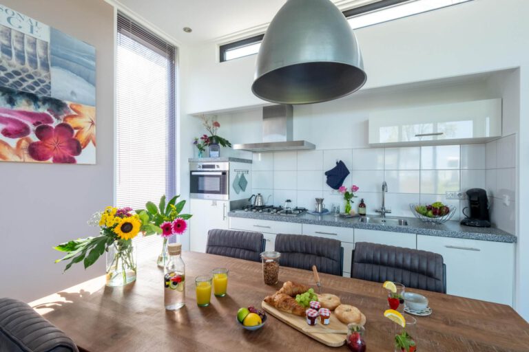 Am großen Esstisch für 6 Personen haben Sie ebenfalls einen wunderschönen Blick direkt auf das Veluwemeer.