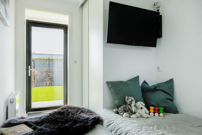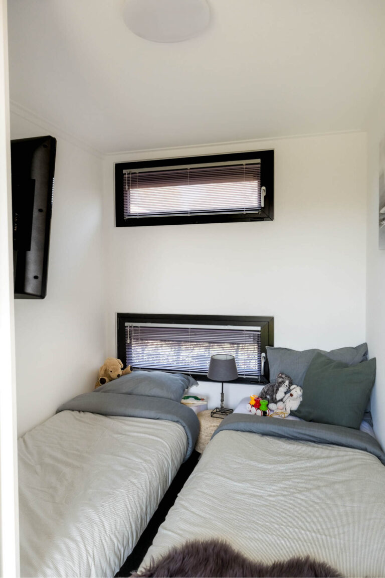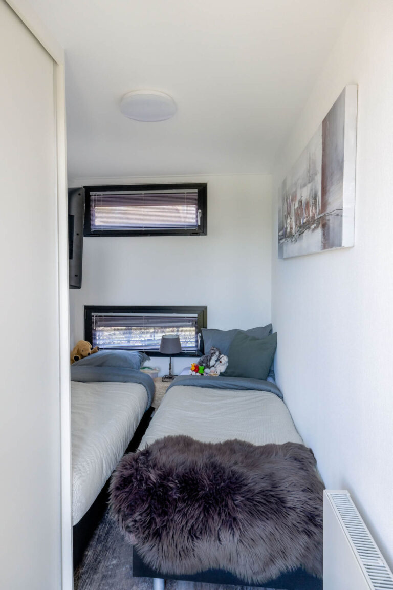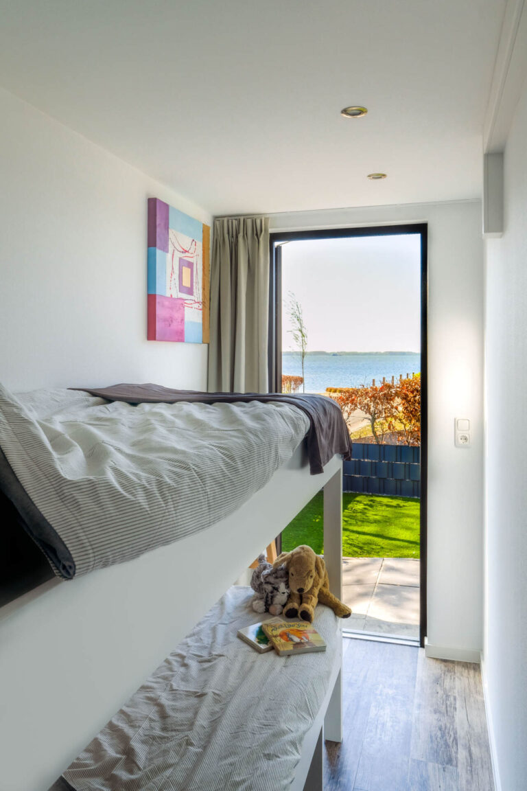 Das dritte Schlafzimmer/Kinderzimmer verfügt über ein Etagenbett, einen sehr geräumigen Kleiderschrank und ebenfalls einen TV. Das dritte Schlafzimmer ist nur über das Hauptschlafzimmer zu erreichen. Auch von diesem Zimmer können Sie direkt auf das Veluwemeer schauen.