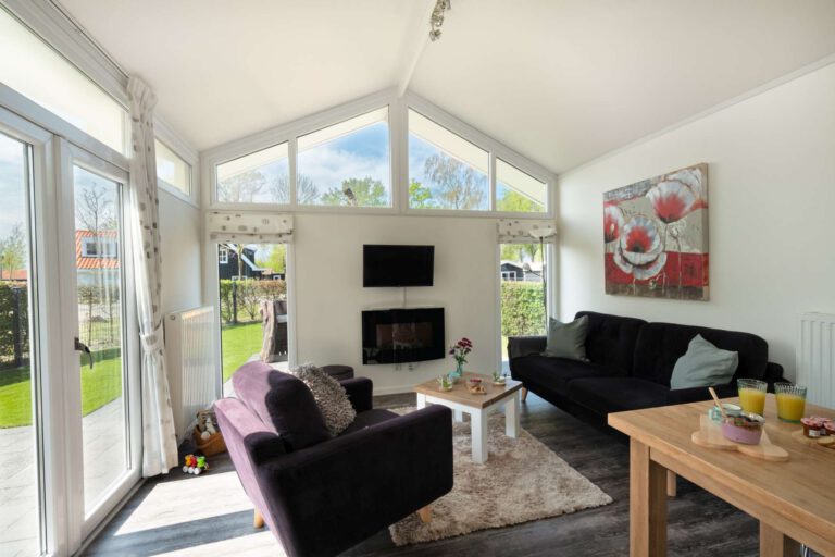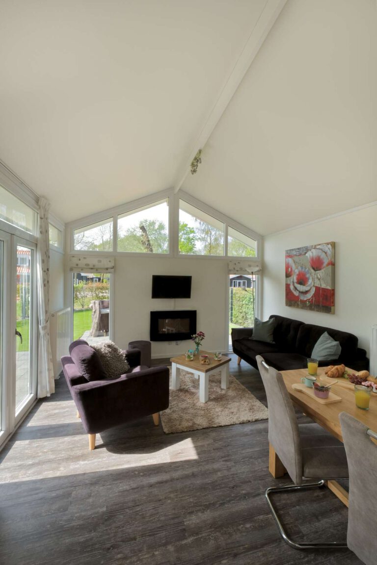 Das Haus ist hell gehalten, die deckenhohen Fenster und die verglaste Schiebetür zur herrlichen Terrasse mit schönem Garten, sorgen für ein einzigartiges Urlaubsgefühl.