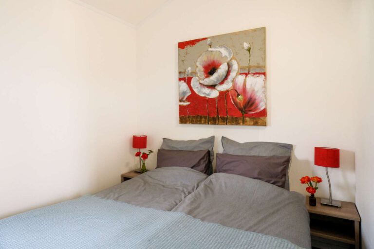 Die Schlafzimmer sind mit Boxspringbetten versehen, Nachttischen und Leselampen, sowie großzügige Kleiderschränke und Hochschränke. Beide Schlafzimmer sind mit einem TV ausgestattet.