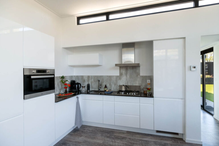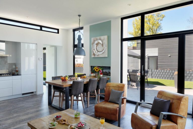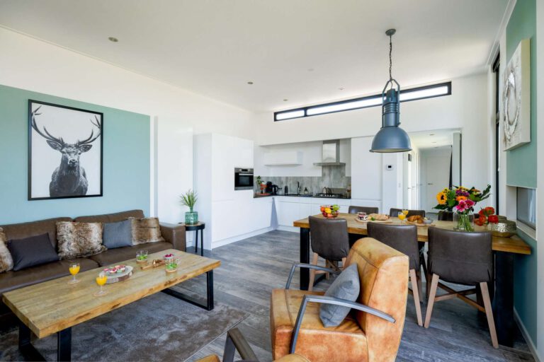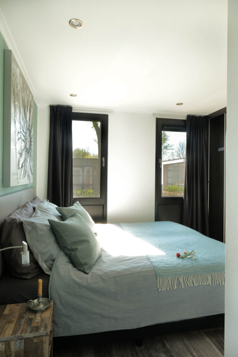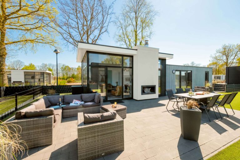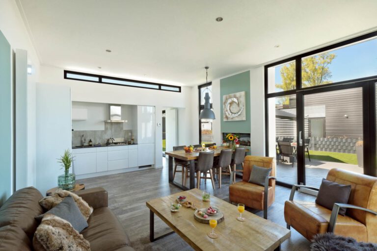 Der Luxus Cube Maximal Plus ist ein besonders elegantes und luxuriöses Ferienhaus mit hohem Komfort. Die hohen 3 Meter Decken, deckenhohen Fenster, das geräumige Wohnzimmer und die verglaste Schiebetür zur herrlichen Terrasse mit dem schönen Rasen, sorgen für ein einzigartiges Urlaubsgefühl.