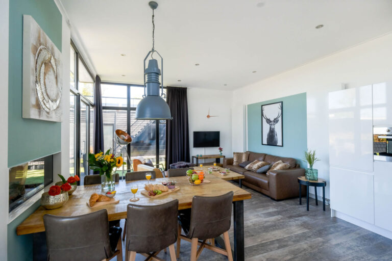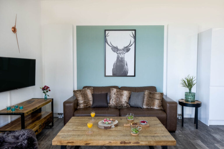 Das Wohnzimmer verfügt über eine moderne gemütliche Couch mit zwei Sesseln, sowie einen Flachbild-Fernseher. Aus dem Wohnzimmer genießen Sie den herrlichen Ausblick auf das Veluwemeer.