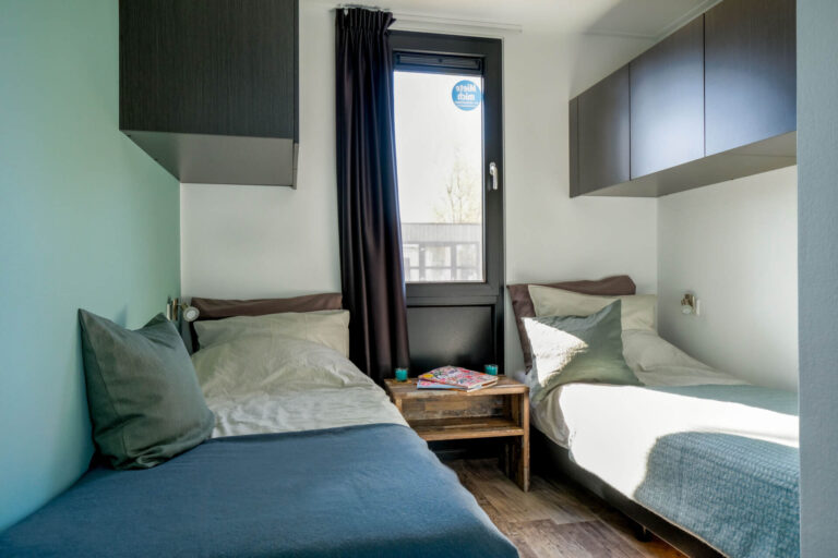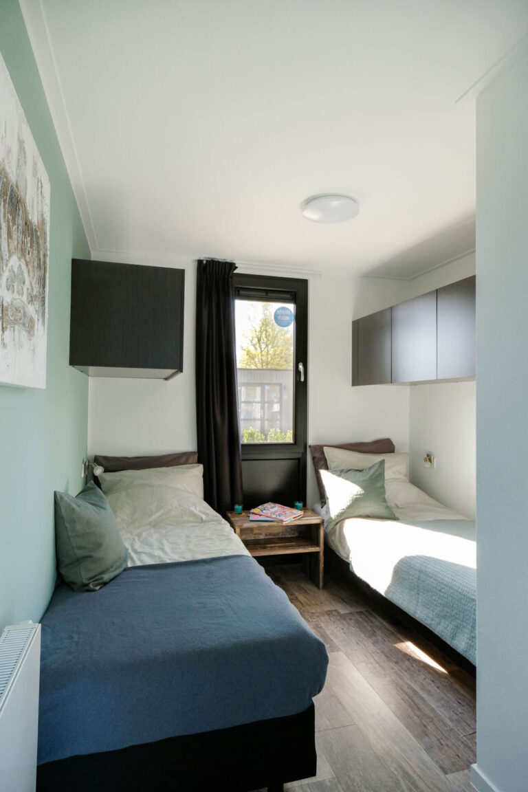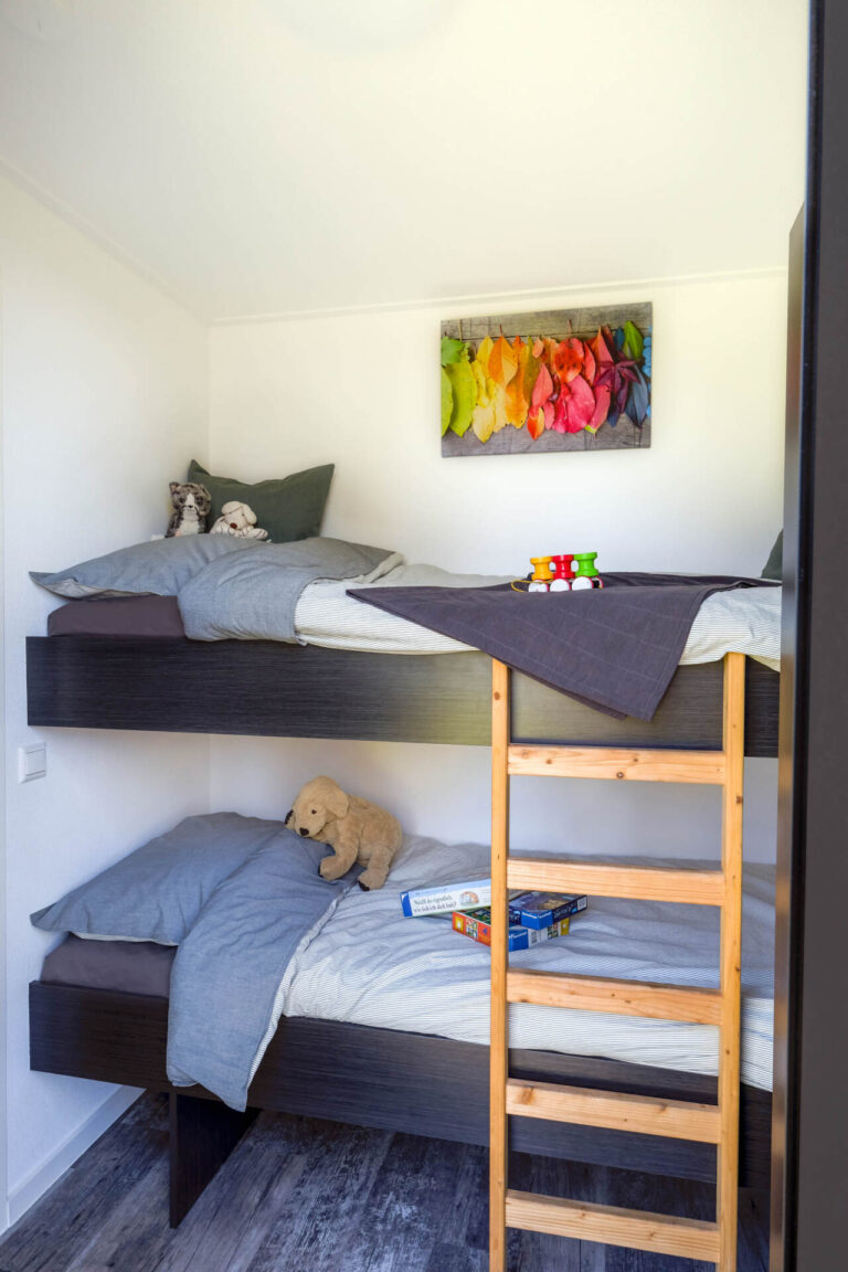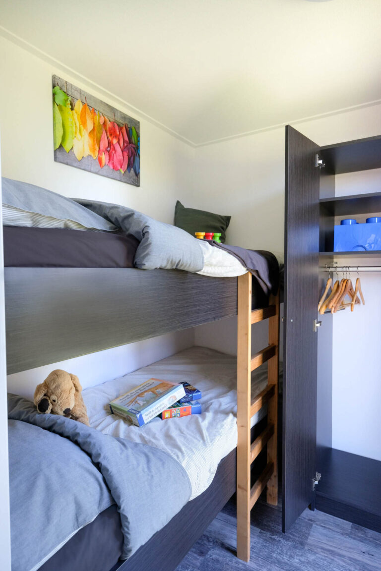 Das dritte Schlafzimmer/Kinderzimmer verfügt über ein Etagenbett, einen sehr geräumigen Kleiderschrank und ebenfalls einen TV. Auch von diesem Zimmer können Sie direkt auf das Veluwemeer schauen.